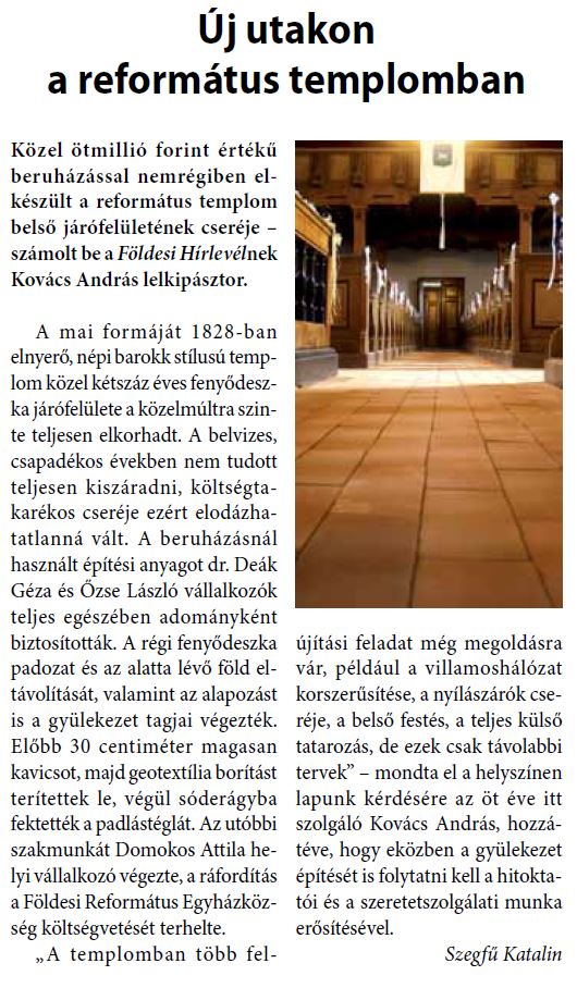 rendelkező településünkön a XVI. század végén már a reformáció szellemében